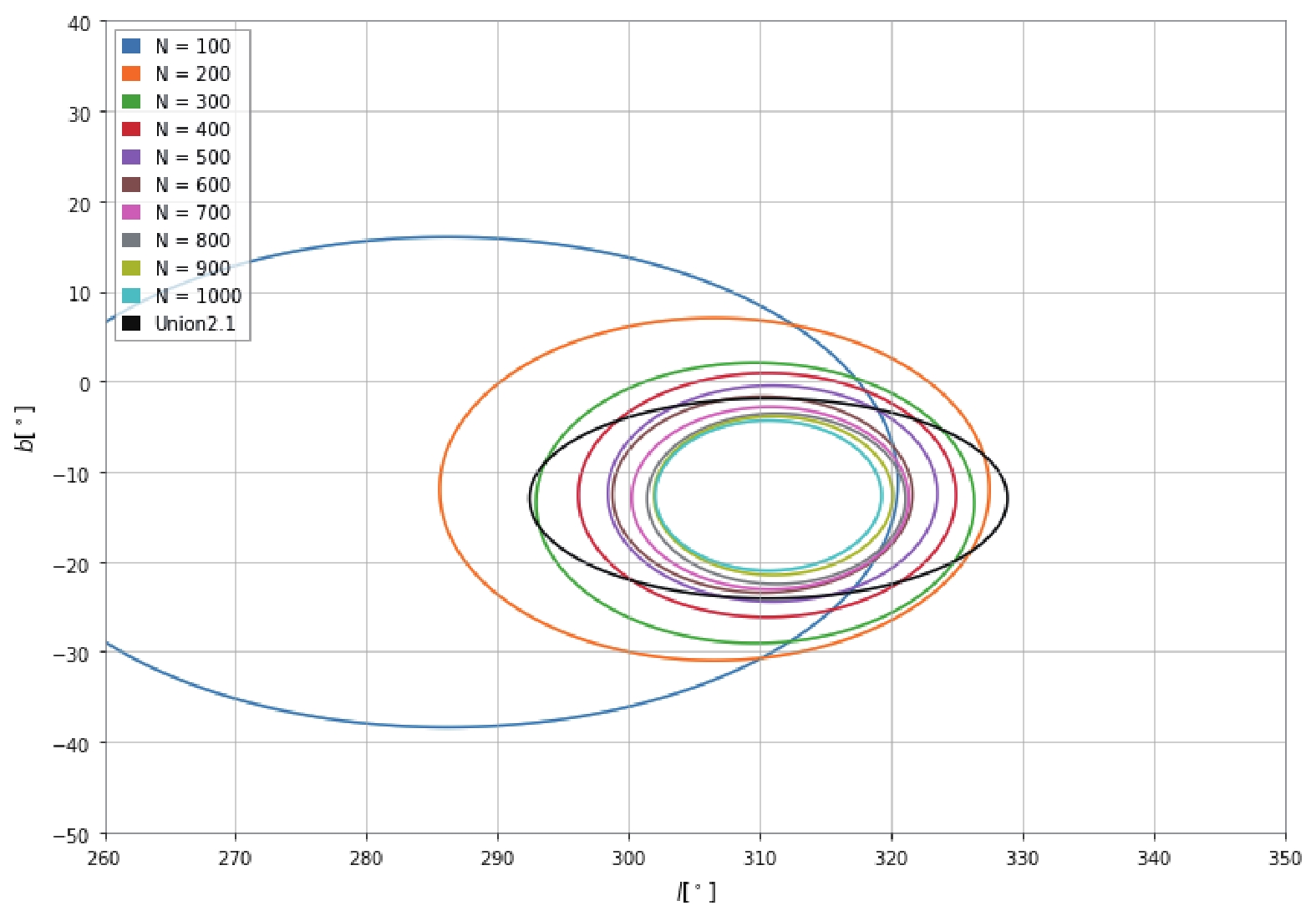 $ \sigma $ confidence region of Union2.1. The percentage of points within the red circle in Fig. 5 is 73.5%. -