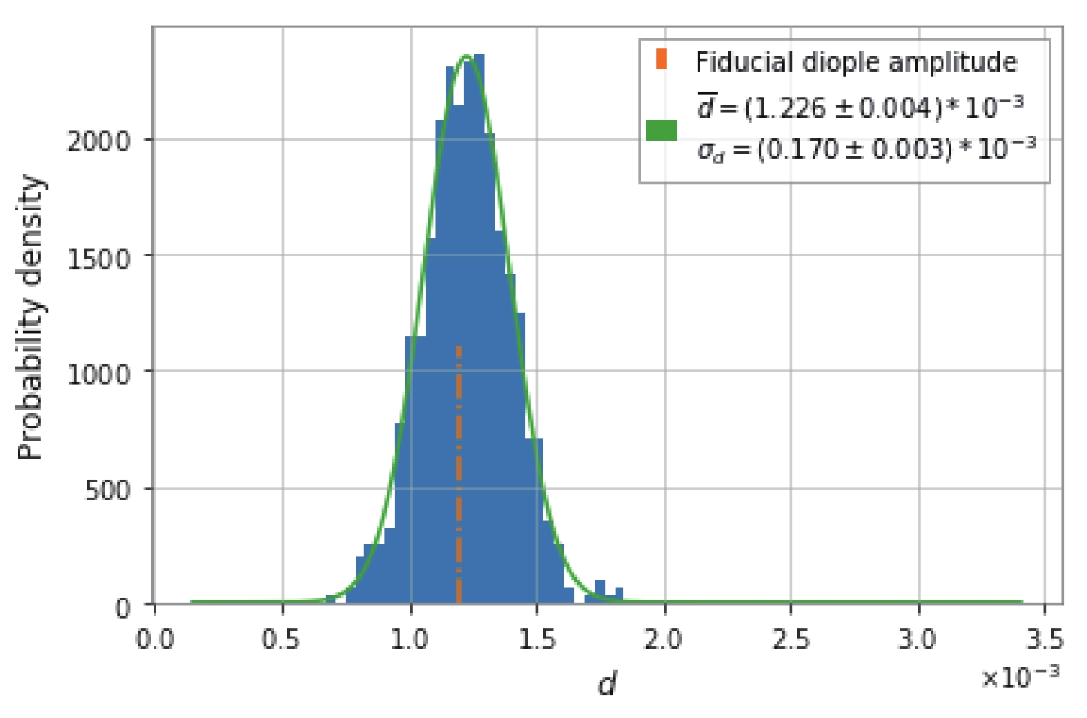$ 1.226\times10^{−3} $ , and with the standard deviation$ \sigma_{{d}} = 0.170\times10^{-3} $ . This implies that the fiducial dipole amplitude can be correctly reproduced with ~ 1000 GW events.