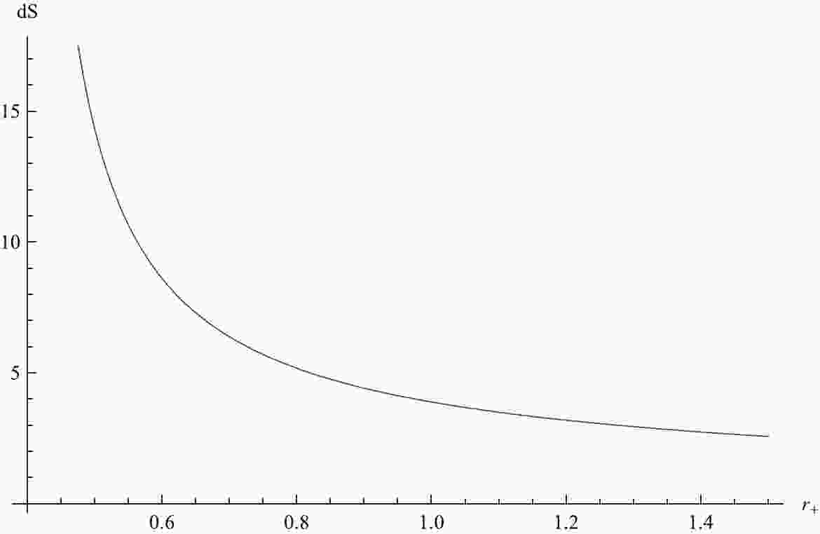Next, we focus on the second law of the thermodynamics in the extended phase space with Eq. (49). Note that, in Eq. (42), the variation dB is a function of $ {\rm d}r_+, {\rm d}Q, {\rm d}b $. However, the existence of dQ and db would affect the definition of $ \Phi $ and B, respectively. Thus, dQ and db may relate to $ {\rm d}r_+ $, resulting in that dB is only a function of $ {\rm d}r_+ $. Without loss of generality, we will regard dB as $ g h {\rm d}r_+ $, in which $ g\equiv \partial B/ \partial r_+ $ and h are the contributions of $ \partial B/ \partial Q $ and $ \partial B/ \partial b $, respectively. For simplicity, we set $ k = gh $, where k is a positive parameter for the energy of the black hole, which increases as a charged particle is absorbed by the black hole. In this case, Eq. (49) changes into