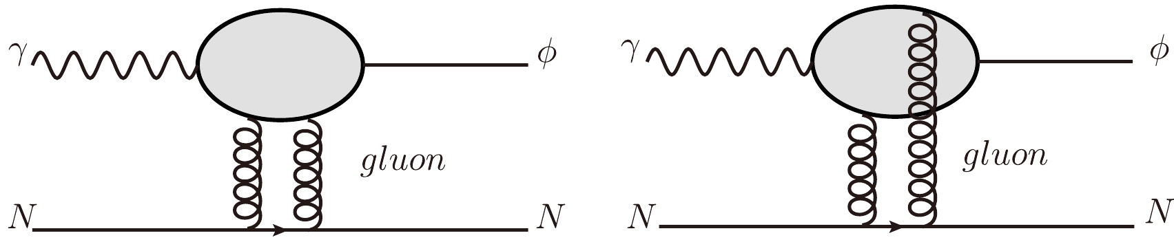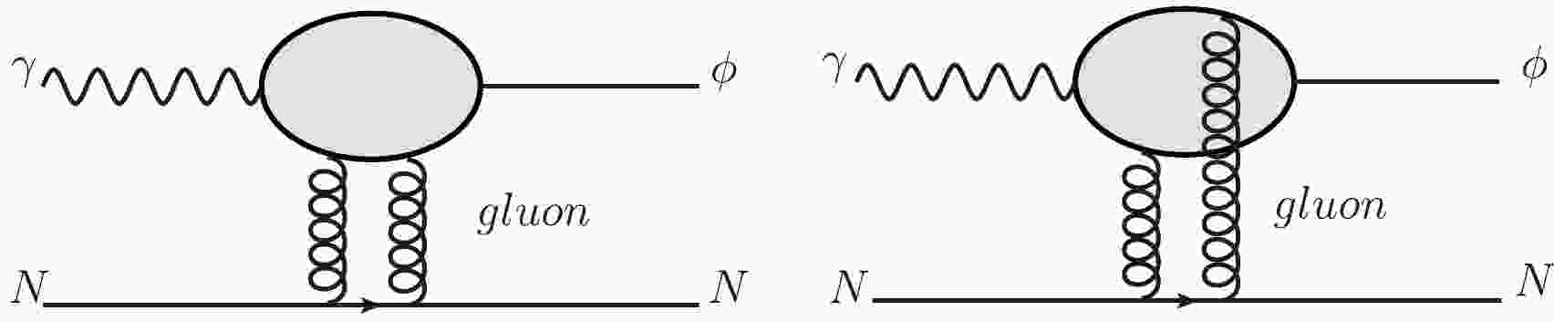 Photons split into a pair of dipoles, which exchange two gluons to scatter protons and finally form the meson ϕ in the two gluon exchange model, as shown in Fig. 1. In lowest order perturbative QCD, the differential cross section obtained from the ϕ photoproduction amplitude is [17]