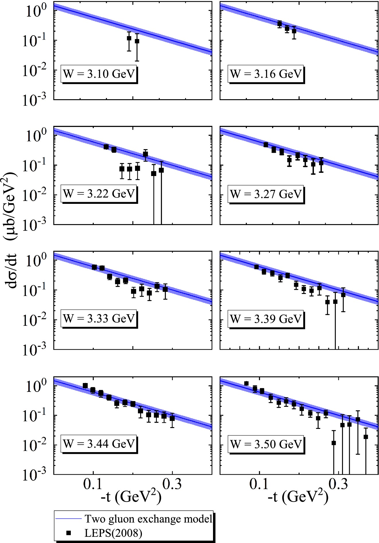 $ \beta^{2}=4 $ GeV$ ^{-2} $ was corrected by the nucleon and nucleon scattering amplitude from Ref. [29]. In this study, β is a free parameter and obtained by fitting the experimental data of ϕ photoproduction. -