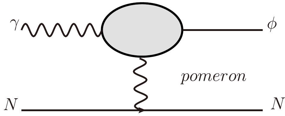 $ \gamma p $ $ \rightarrow $ $ \phi p $ reaction process of the pomeron model [17, 18], where the differential cross section of ϕ photoproduction is written as$ \begin{equation} \frac{\mathrm{d} \sigma}{\mathrm{d} t}=\frac{81 m_{\phi}^{3} \beta^{4} \mu_{0}^{4} \Gamma_{\mathrm{e}^+ \mathrm{e}^-}}{\pi \alpha_{\rm em} }\left(\frac{s}{s_{0}}\right)^{2\alpha(t)-2}F_{1}(t), \end{equation} $