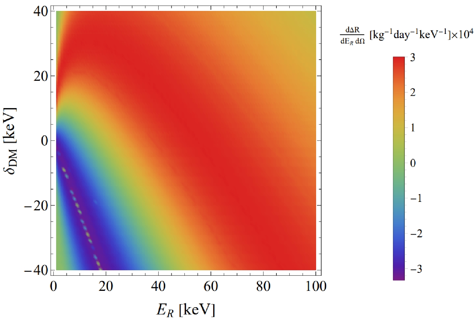 $ \frac{{\rm d} \Delta R}{{\rm d} E_R {\rm d} \Omega}=\frac{1}{2}\left(\frac{{\rm d}^3 R(\vec{s})}{{\rm d} E_R {\rm d} \Omega}-\frac{{\rm d}^3 R(-\vec{s})}{{\rm d} E_R {\rm d} \Omega}\right). $