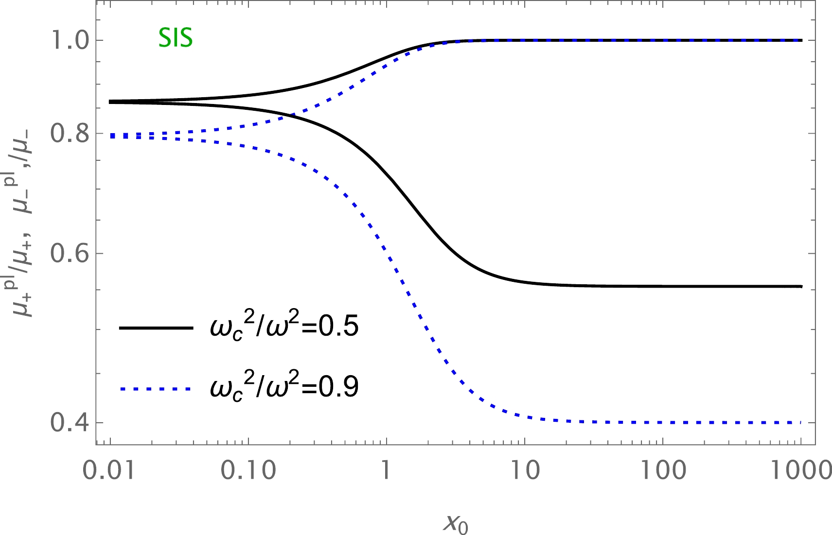 (47) $ (\mu^\mathrm{pl}_-)_\mathrm{SIS}=\frac{1}{4}\left(\dfrac{x_\mathrm{SIS}}{\sqrt{x^2_\mathrm{SIS}+4}}+\dfrac{\sqrt{x^2_\mathrm{SIS}+4}}{x_\mathrm{SIS}}-2\right)\ , $